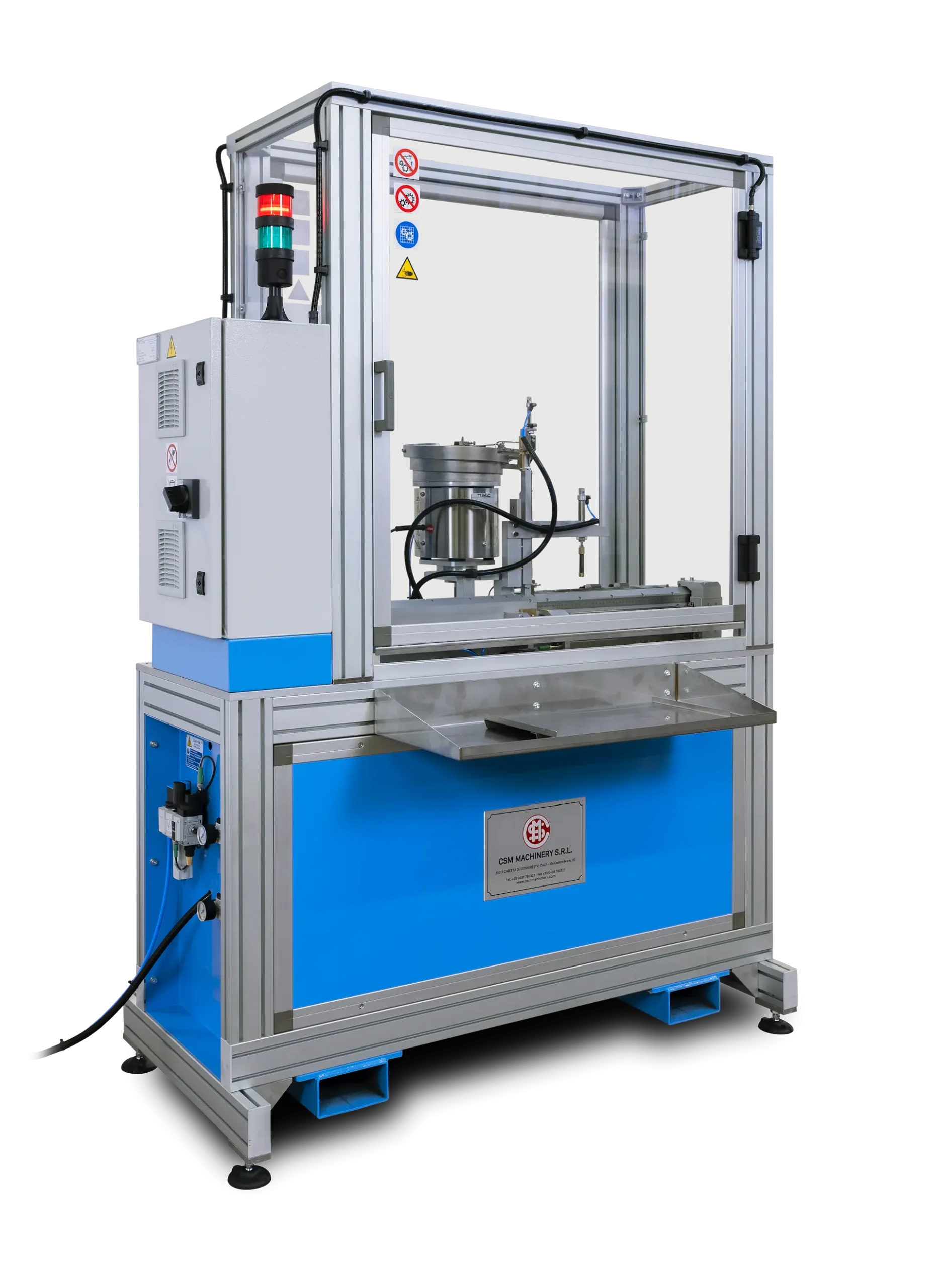 AUTOMATIC VIBRATING FEEDER FOR PLASTIC PLUGS The vibrator comes complete with a bowl specific to each plug type, and a guide track to carry the plug to the assembly position.