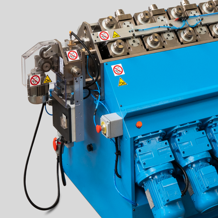 The automatic feeding device for roll reducing machines delivers a continuous and precise material flow, making it ideal to produce large batches of heating elements. The system significantly improves process efficiency by optimizing every stage of operation.