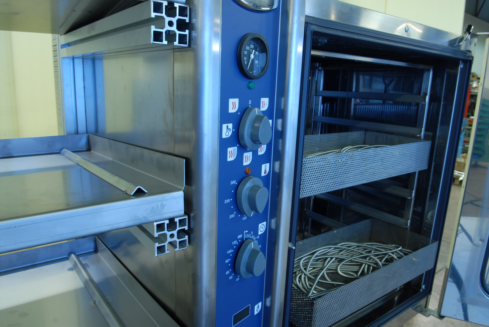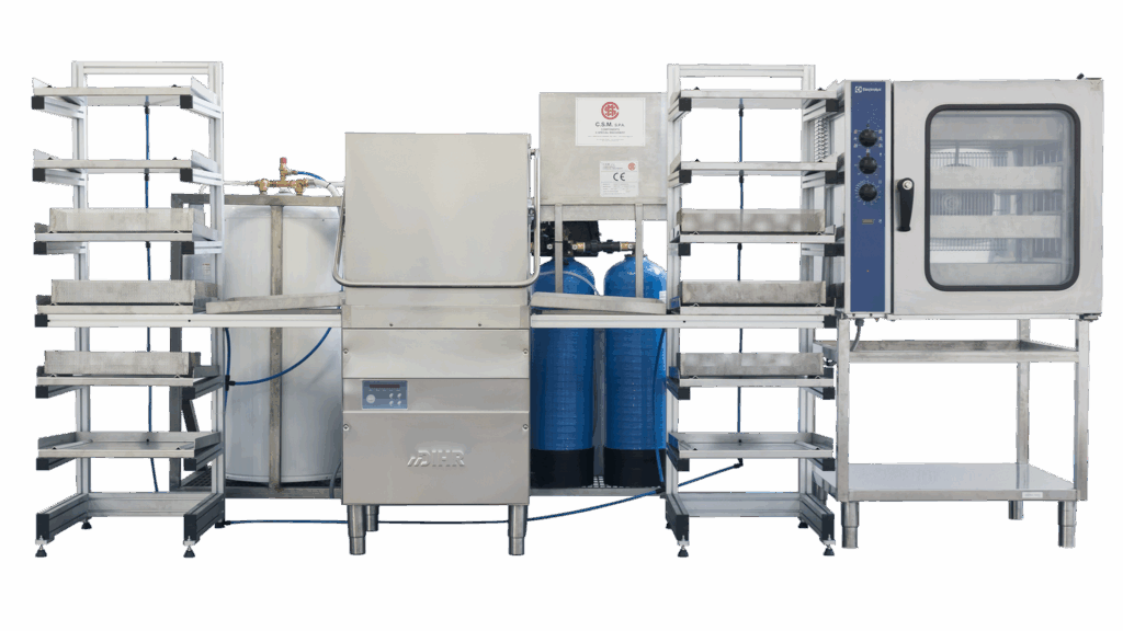 OIM’s coil cleaning system for heating elements features a stainless steel structure integrating a washing unit, draining section, and drying oven. The system includes tailored solutions for water treatment, gas or electric boilers, and ten dedicated tanks for coils.